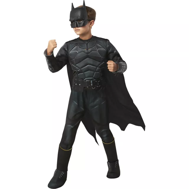 Stop villains in their tracks with this epic Kids Batman Costume Deluxe! This officially licensed costume includes a muscle chest jumpsuit, a flowing black cape, and Batman's signature mask. With a look like this, the bad guys will take one look at you and run the other way. Take to the streets of Gotham on Halloween night and start your crime-fighting adventure!