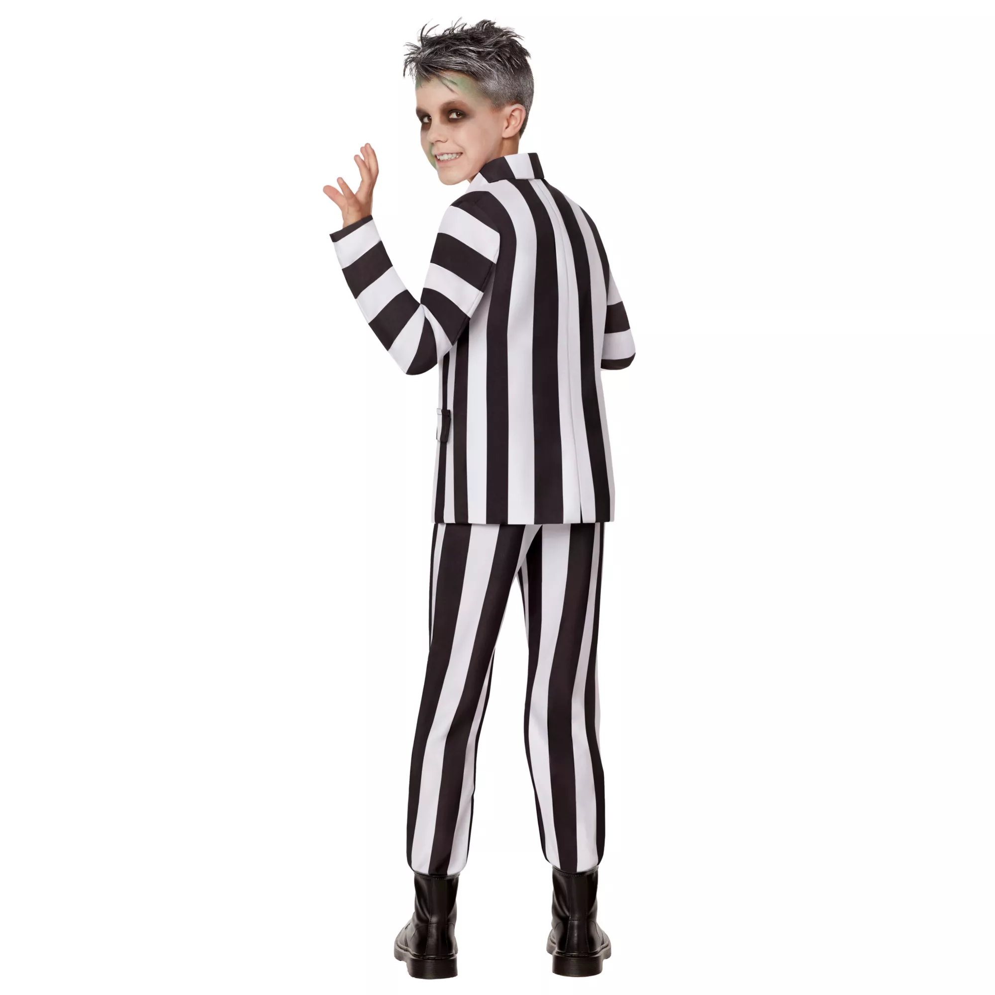 Bring your favorite movie ghost to life with this official Kids Beetlejuice Costume. Do your best to scare everyone when you put on Beetlejuice's familiar black and white striped suit. Make it a wild Halloween as you celebrate the classic Tim Burton film.