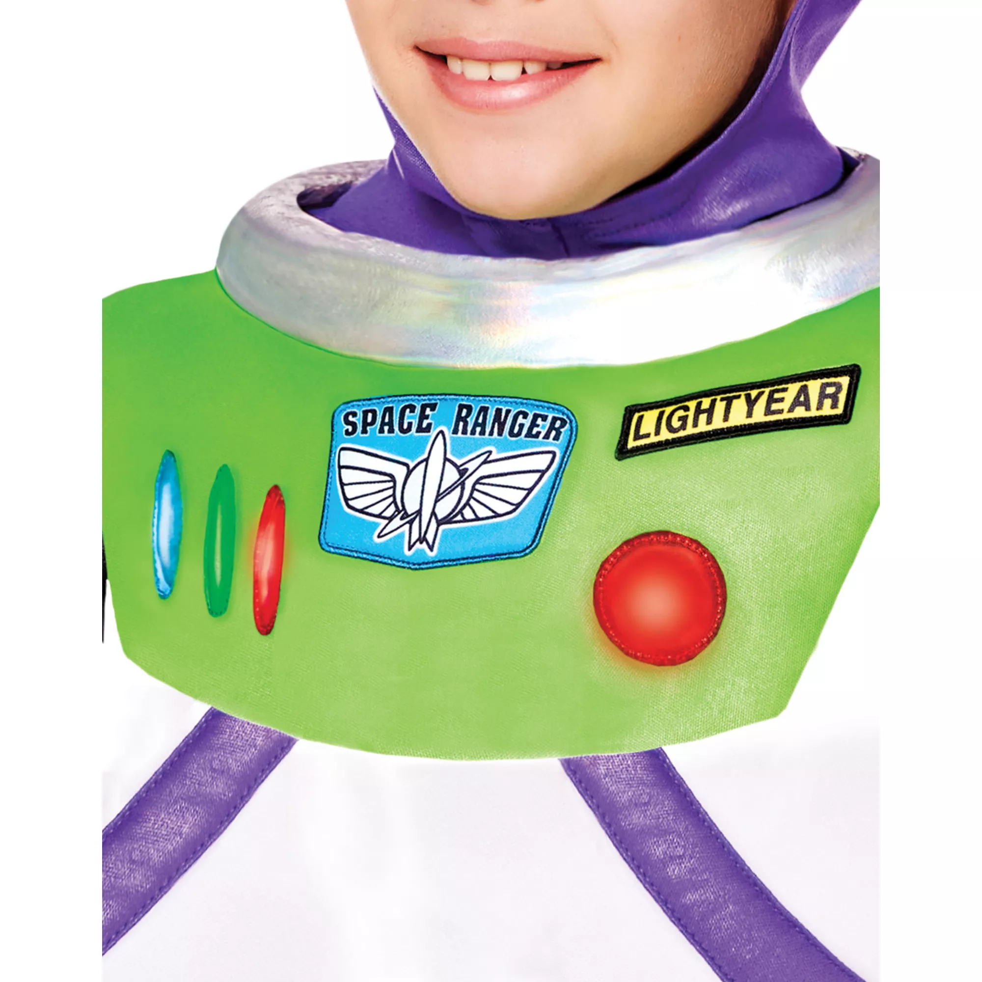 Trick or Treating will be a breeze when you fly through the neighborhood in this officially licensed Buzz Lightyear Costume! Featuring an incredibly detailed Buzz Lightyear jumpsuit and a hood, this costume is perfect for any Toy Story fan. To infinity and beyond!