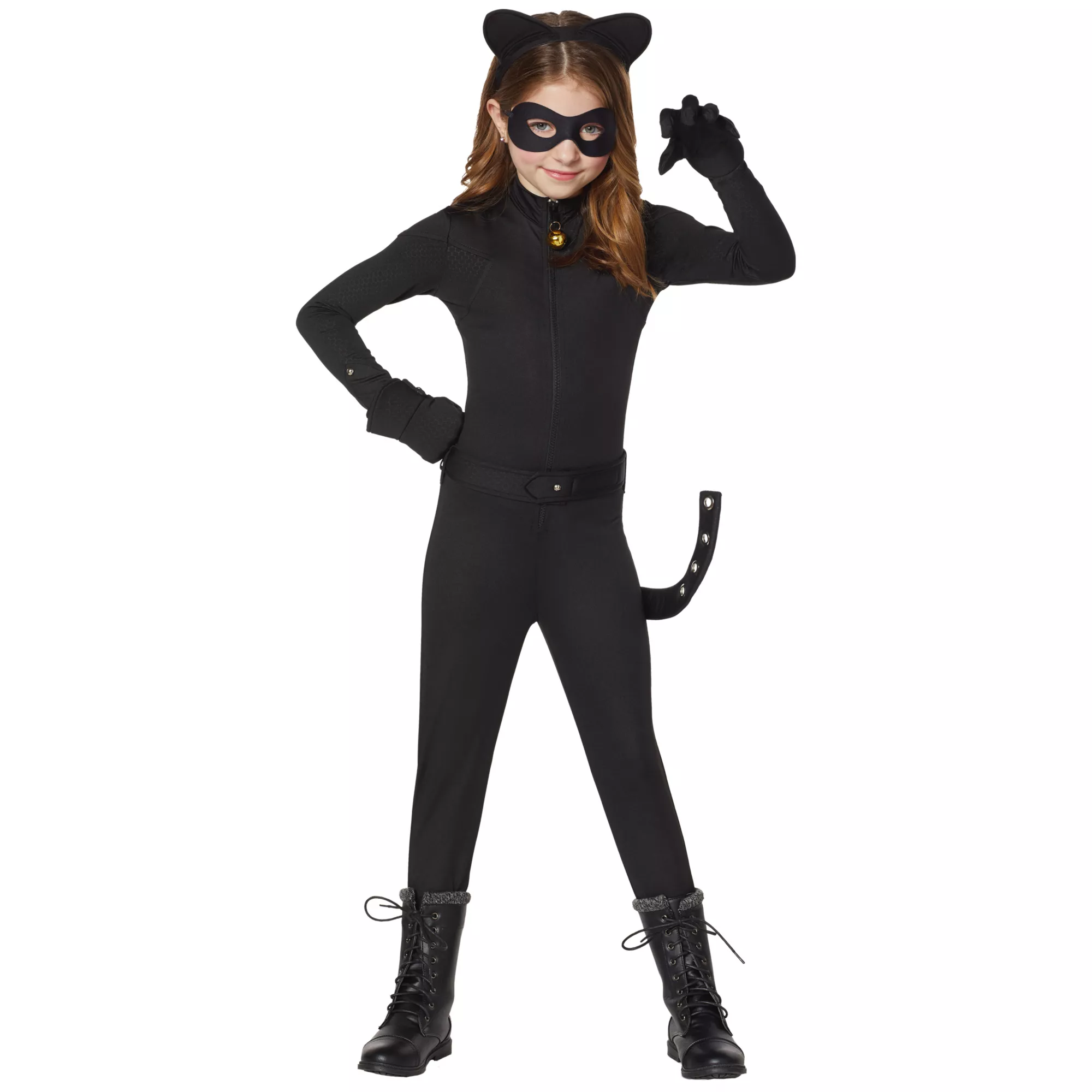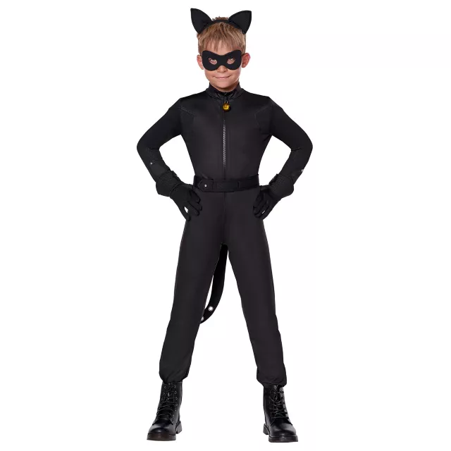 Let your little one transform into a superhero this Halloween when you dress them in this officially licensed Cat Noir costume! They will gain the power of bad luck and destruction as they take on every house gathering all the Halloween candy they can fit into their bag! The adorable catsuit will keep your child comfortable all day long and have them looking like a little feline. Add the included ear headband, eyemask with elastic back, detachable belt and tail and gloves for a put together look!