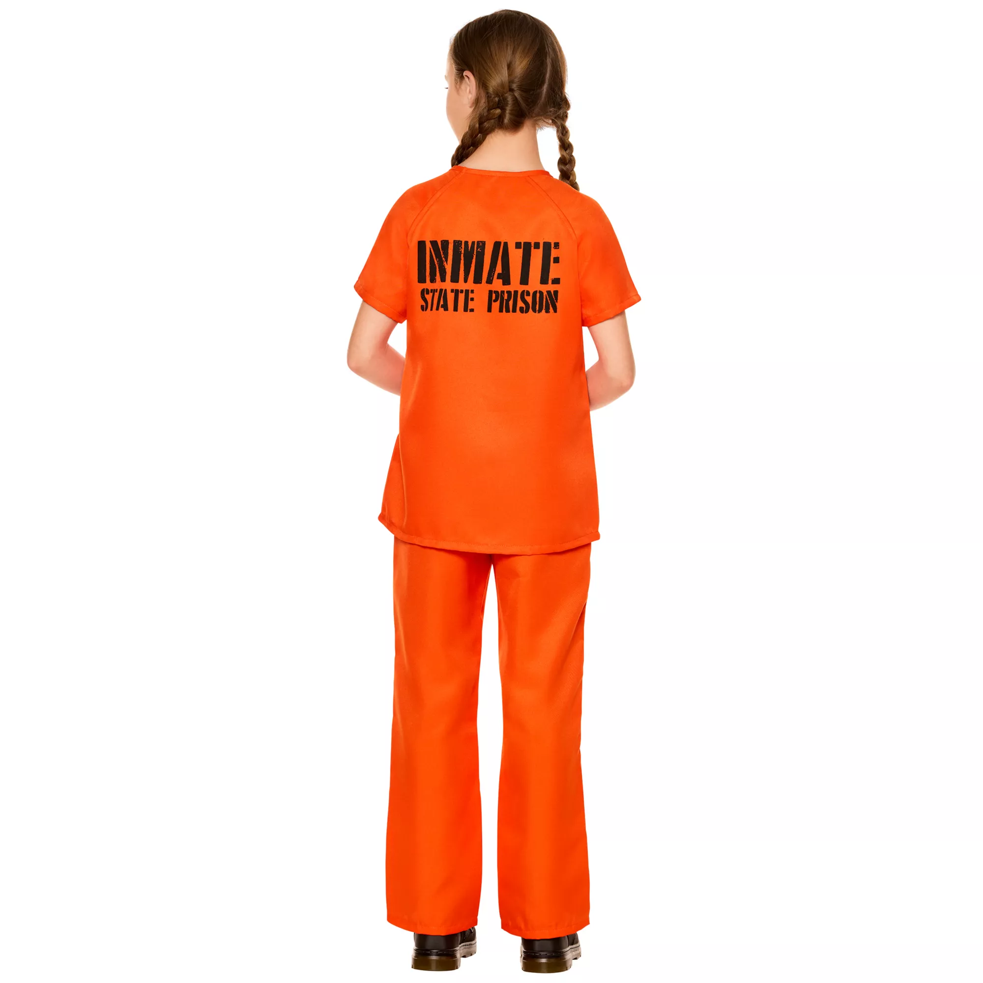 Break into some fun with this Kids Convict Costume! This playful outfit includes an orange outfit with an "Inmate State Prison" top and matching orange pants. Get ready for some jailbreak shenanigans and unforgettable Halloween memories!