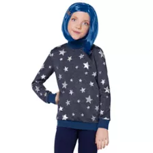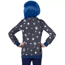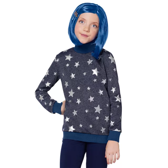 Dress up as your favorite movie character in this official Kids Coraline Costume! Wearing Coraline's blue sweater with white stars, plus a blue wig and dragonfly hair clip, your Halloween will be a true adventure. You'll be sure to get everyone's attention when put on thsi Coraline outfit.