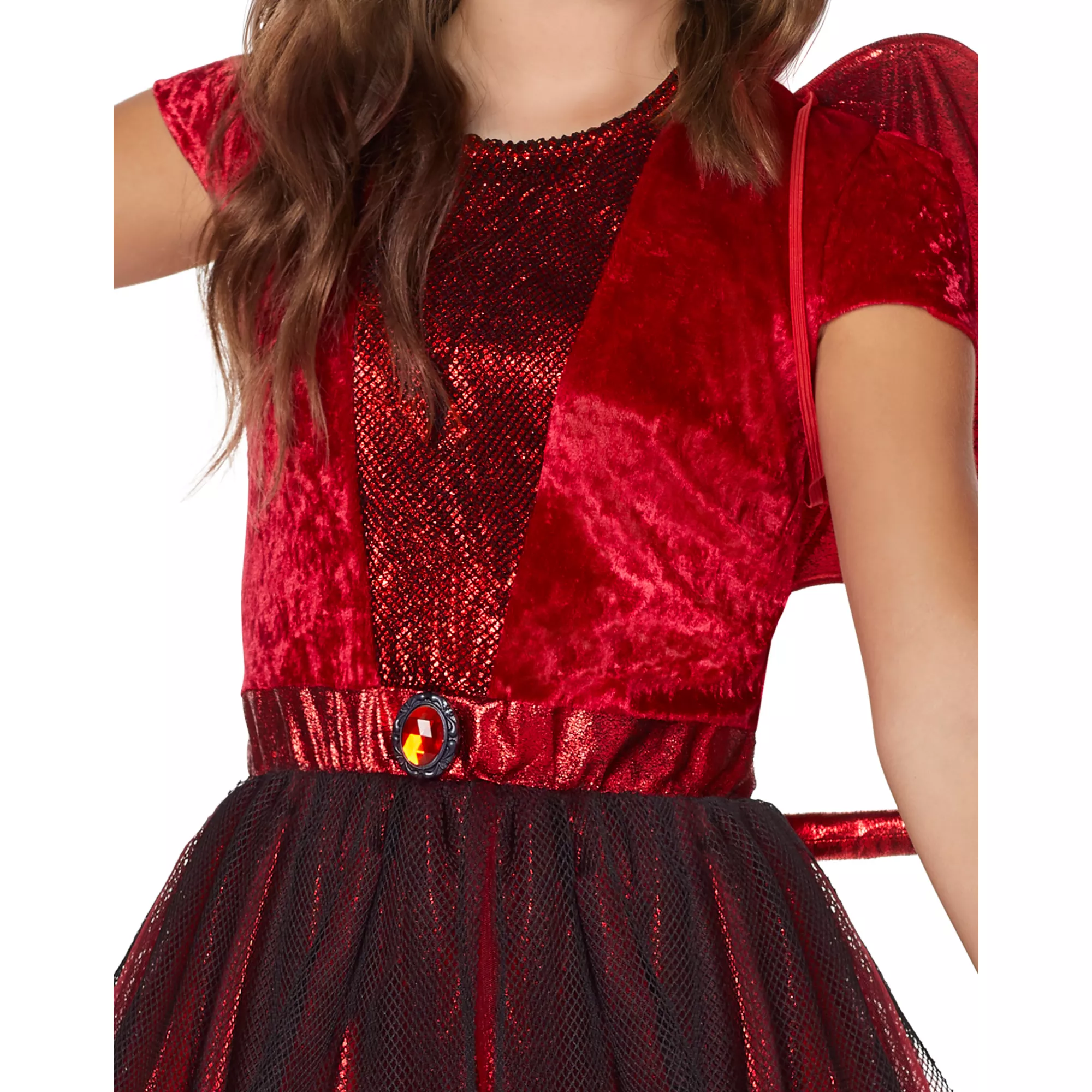 Let your little get a little devilishly daring when she wears this adorable devil costume this Halloween! This velvet dress with metallic detail features fishnet assets that will have her standing out among the rest! The attached tail adds a little extra style! This is the perfect costume for that little devil of the family.
