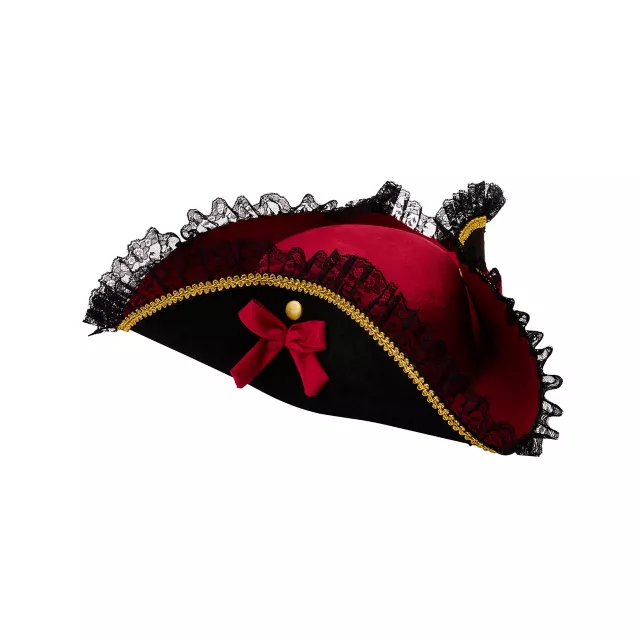 Prepare to sail the seven seas in style this Halloween by completing your pirate outfit with this Kids Pirate Ruffle Hat. This stylish crimson hat features black ruffle detailing around the brim and is perfect for any swashbuckling buccaneer.