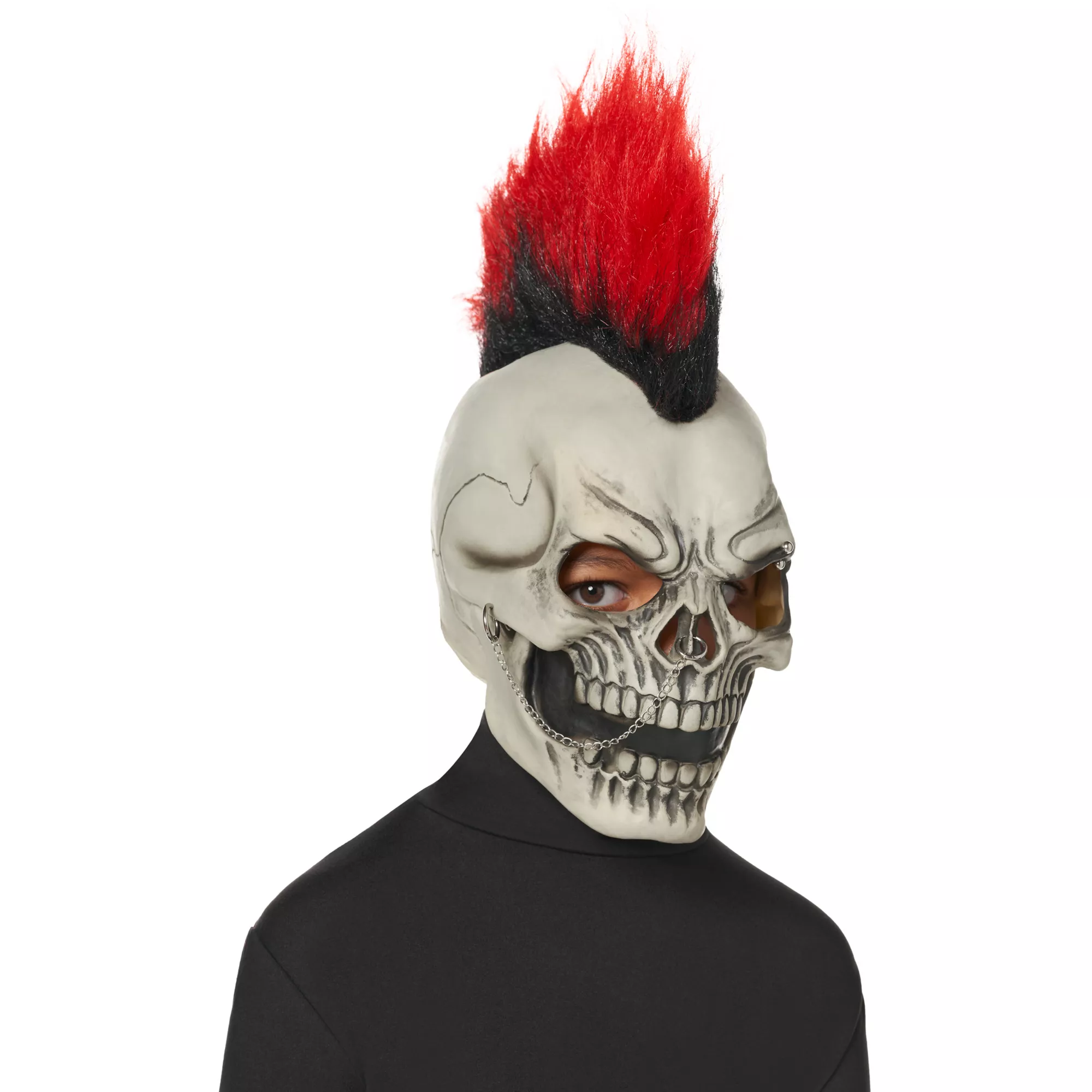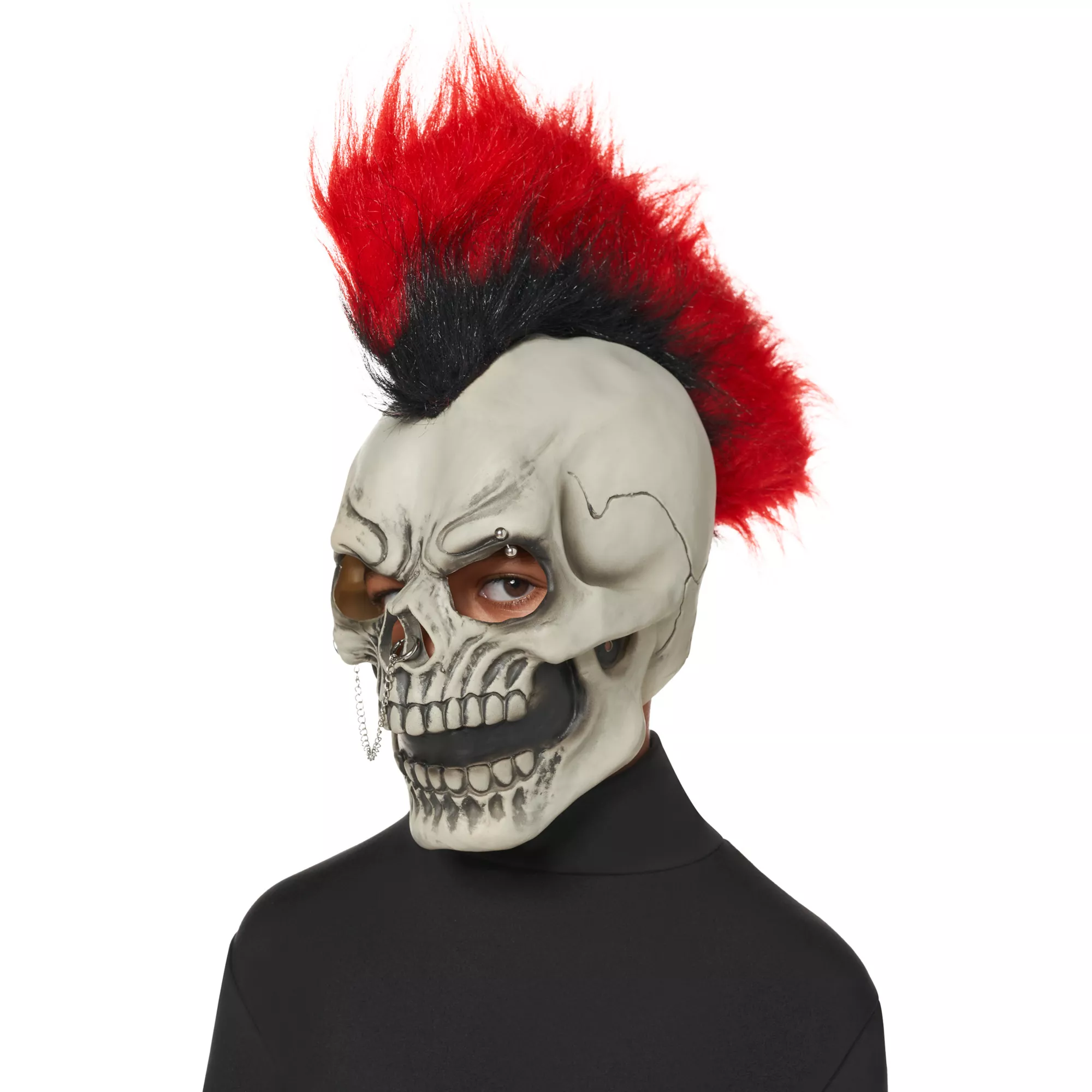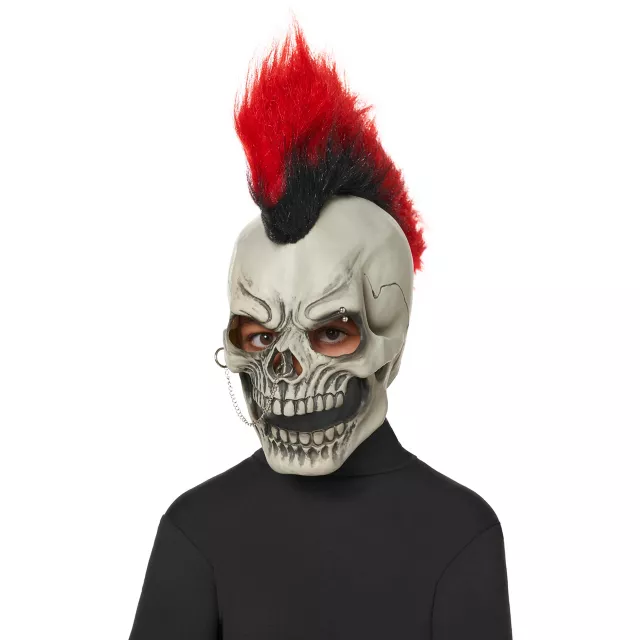 Show just how big of a rebel you are this Halloween when you wear this Kids Punk Skeleton Mask! This edgy and scary mask features a red and black mohawk and a nose chain along with a spooky skeleton face. It's the perfect mask to make sure everyone knows just how tough you are.