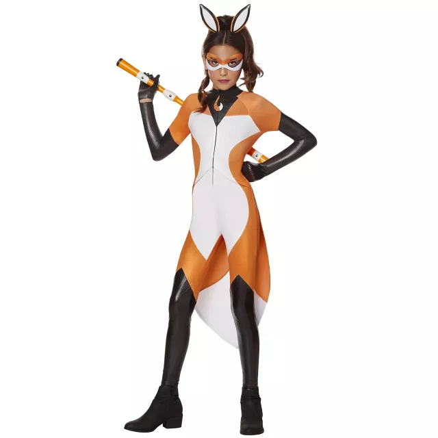 Team up with Cat Noir and Miraculous Ladybug to help stop some super baddies this Halloween when you dress up in this officially licensed Kids Rena Rouge Costume. This officially licensed costume will have you ready to fight against some evil in no time. Featuring a fox jumpsuit, mask, and ears headband, with this Rena Rouge costume on you'll feel just like your favorite superhero from the show!