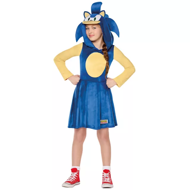 Go fast this Halloween and collect all the chaos emeralds you can in this officially licensed Kids Sonic the Hedgehog Dress Costume. Look just like the blue blur from the Sonic franchise with this easy costume that includes a Sonic dress with attached hood and a tail to turn you into Sonic in seconds. Any gamer looking to live fast this Halloween will love sporting this Sonic dress costume to the next Halloween party.