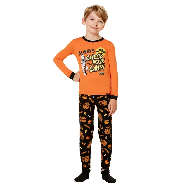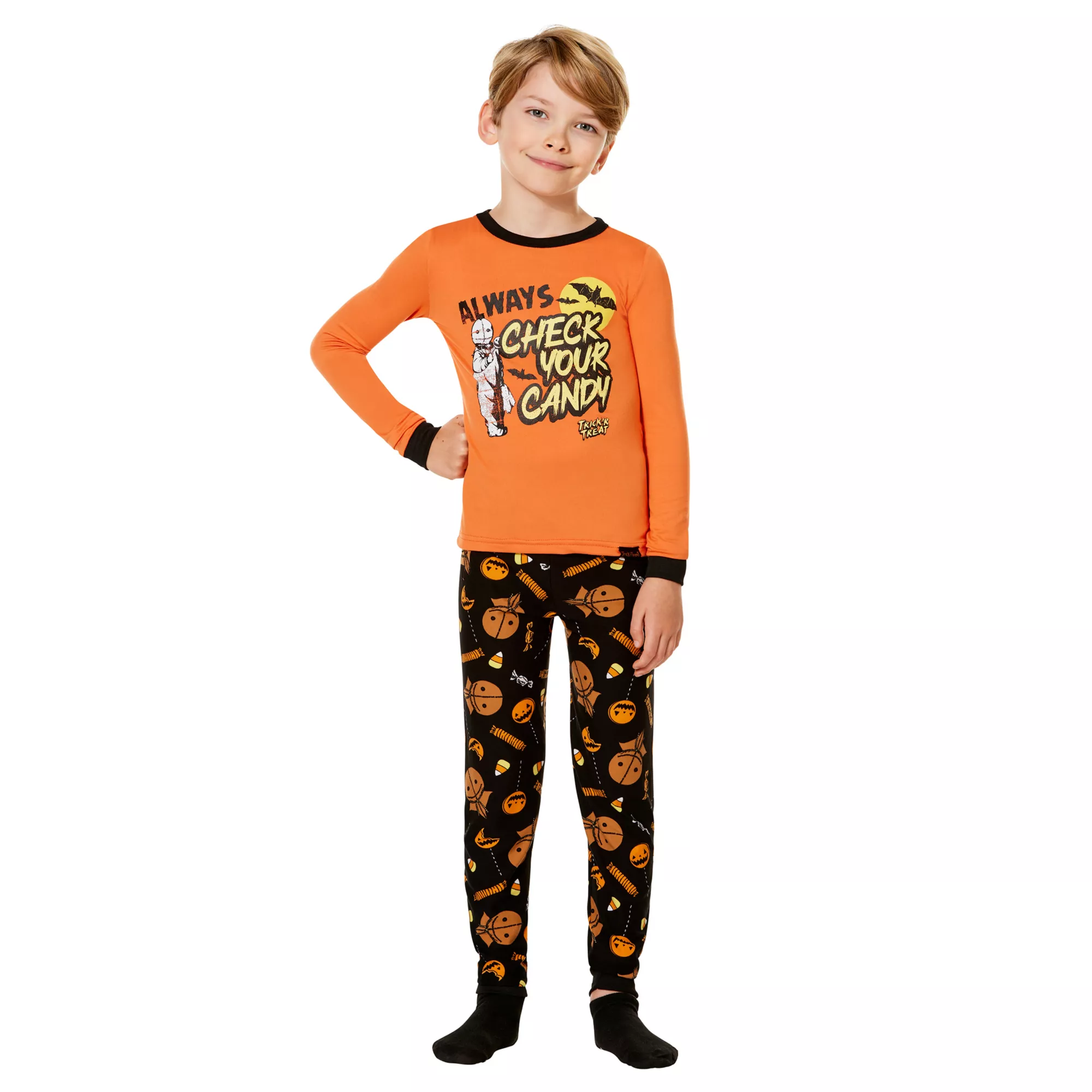 Snuggle up for all your scary movie marathons with this cozy and officially licensed Kids Trick 'r Treat Pajama Set! If Sam is your favorite horror villain, this matching pajama bottom and shirt set is the perfect choice for bedtime this Halloween!
