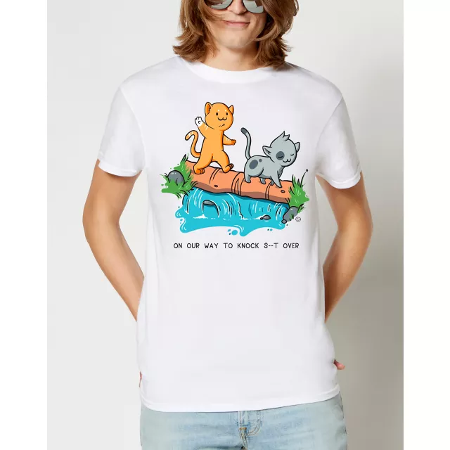 Cute and innocent cats on a t shirt? Add a twist of humor and you've got the perfect graphic tee to make your friends laugh every time you put it on.