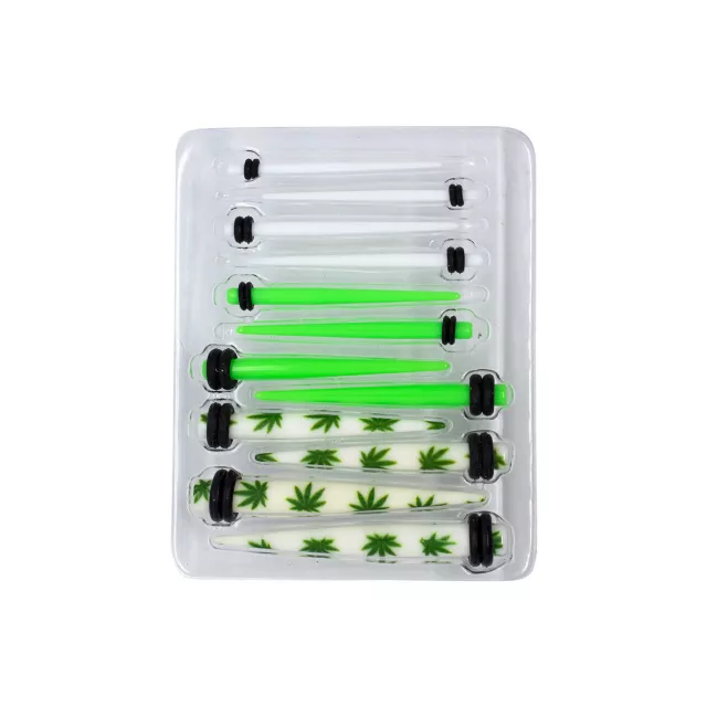 Leaf, Green and White Ear Tapers Kit - 6 Pair