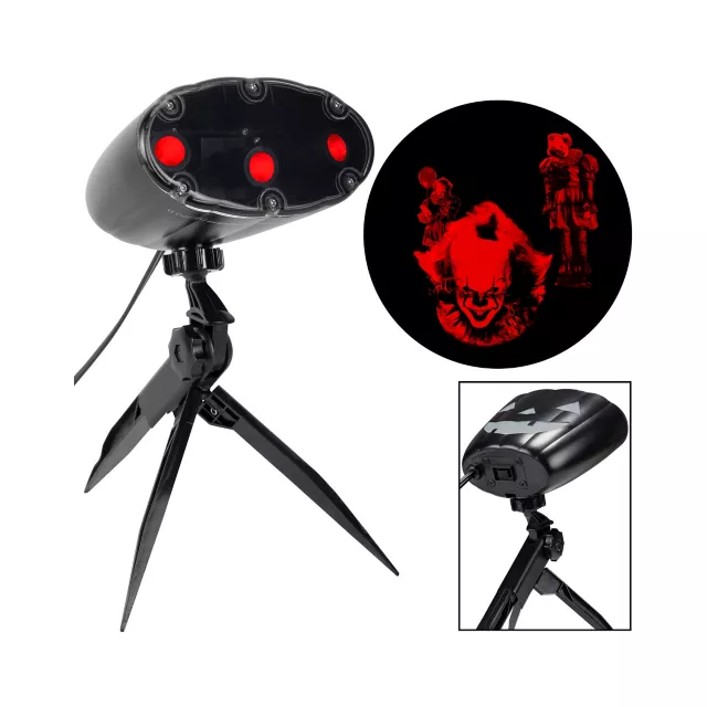 Turn your space into a house of horrors with this officially licensed Pennywise shutter projector. This easy-to-transport projector includes an LED projection spotlight, a tripod stake, and haunting images of Pennywise in eerie red hues! Once you see this creepy Pennywise display, you'll be seeing it in your nightmares for many nights to come.