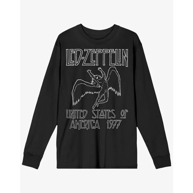 Everyone will know what you're rockin' out to when you're wearing this officially licensed Led Zeppelin United States of America 1977 Long Sleeve T Shirt! Suit up in this stylish long-sleeved tee and you'll always be reppin' your rock fandom.