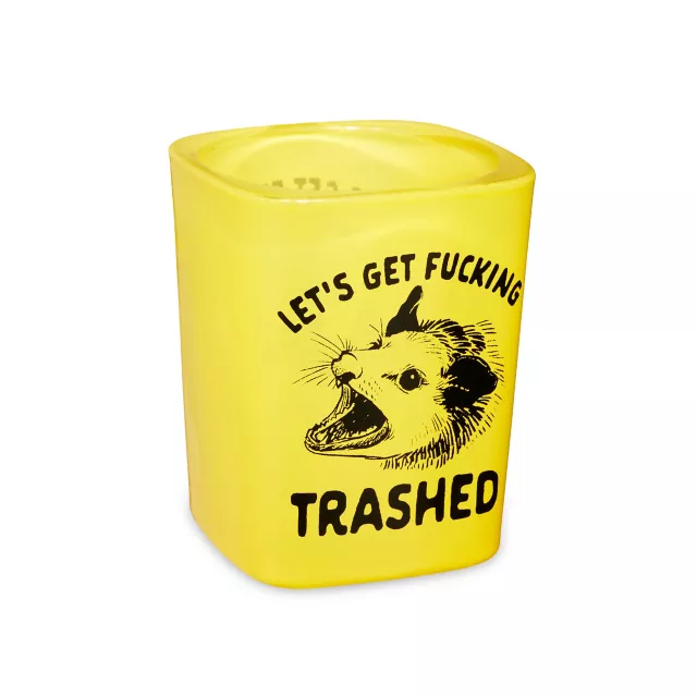 Hoping to embrace your inner party animal? Add this hilarious shot glass to your drinkware collection and prepare to get wild. This square shot glass features a possum illustration alongside the bold phrase "Let's Get Fucking Trashed," making it the perfect party accessory.