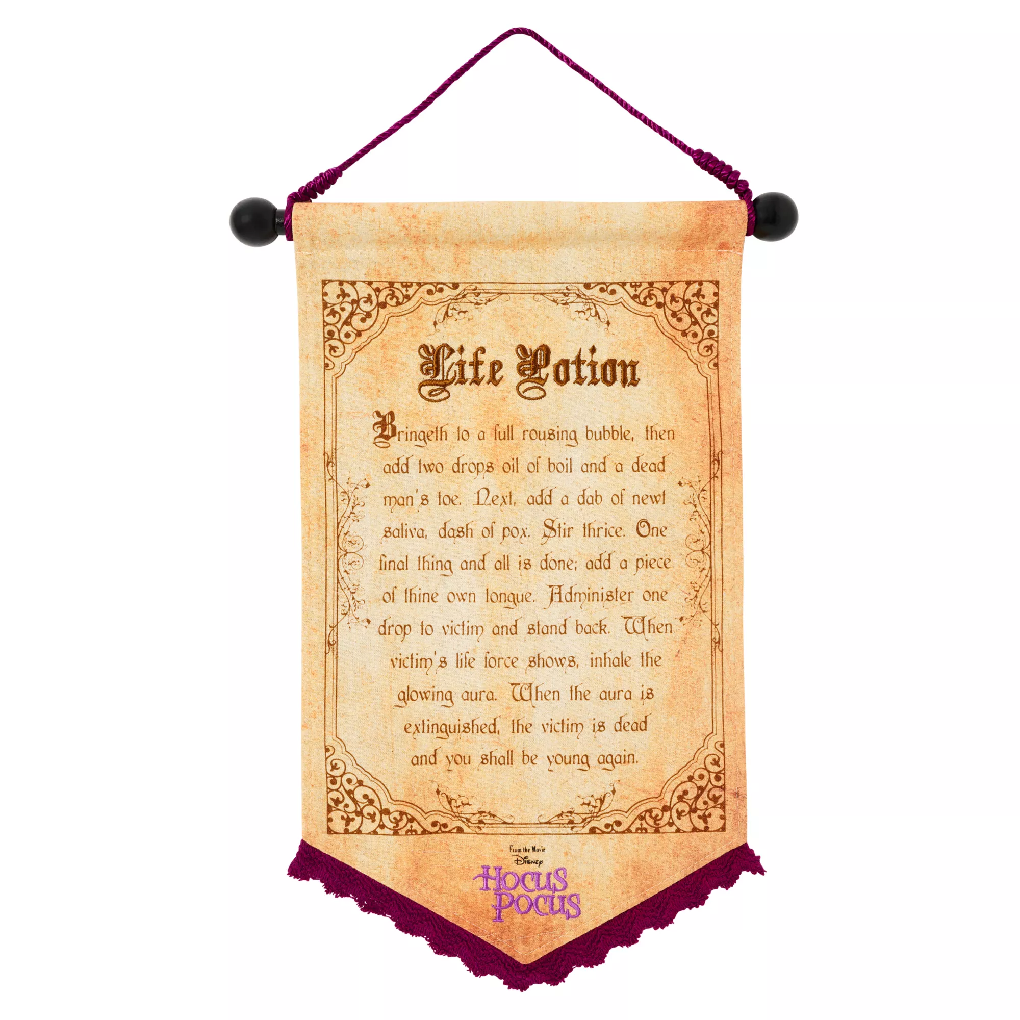 Learn how to brew up your very own Life Potion on Halloween night with this Life Potion Hanging Canvas Banner! This officially licensed banner is the perfect choice for any Hocus Pocus fan looking to add a new wicked decoration to their home.