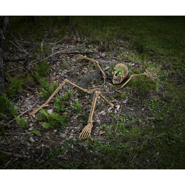 Buried and left for dead, nobody thought twice about these skeletal remains. That is, until they tried to claw their way back out! This Ground Breaking Light-Up Skeletal Remains is sure to shock and scare your guests as it crawls back from the grave.
