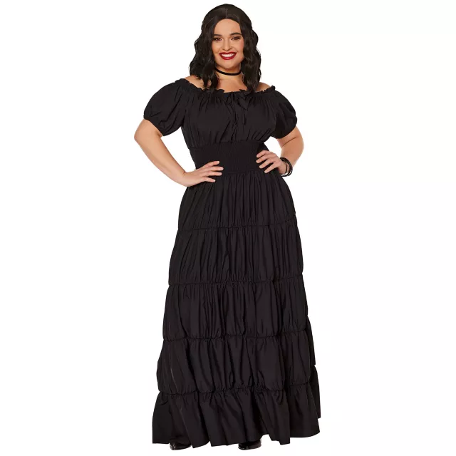 Complete your next Halloween costume with a classic look by sporting this Long Black Peasant Dress as part of your outfit. With this long black dress a part of your closet the costume possibilities will be truly endless this Halloween.