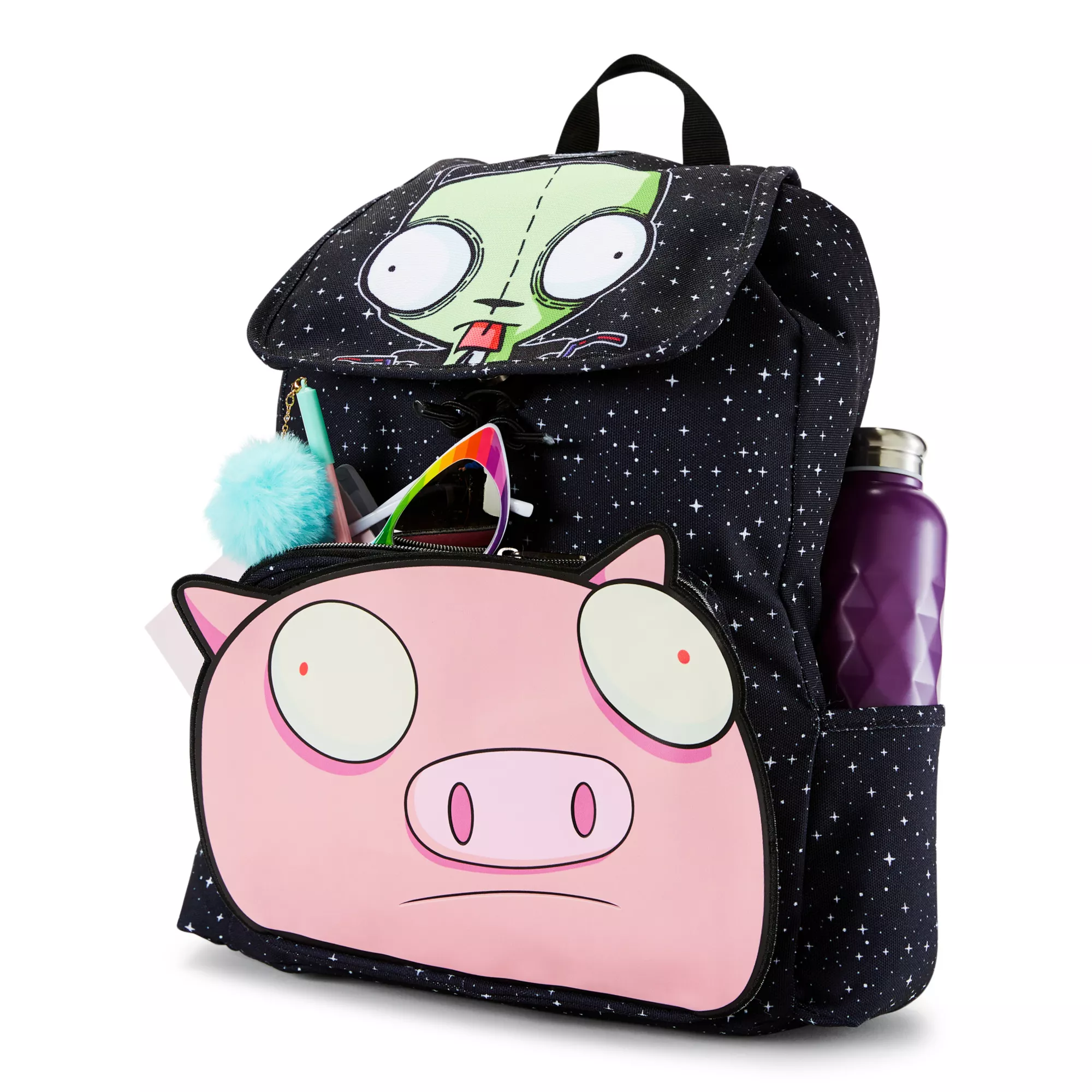 Sing the doom song all day long with this Loungefly GIR 3D Rucksack Backpack! This starry backpack makes for the cutest companion in the galaxy complete with GIR's face and his pet pig.
