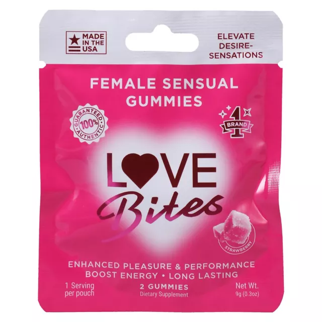 Enhance your pleasure with these strawberry-flavored Love Bites Female Sensual Enhancement Gummies! Just take two of these gummies an hour before your desired sexual activity. They're designed to boost energy and be long-lasting. Discover how good you feel and how aroused you are when you take Love Bites gummies! Elevate your desire and experience the sensations you crave!