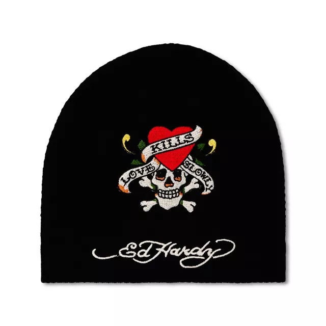 Love Kills Slowly Embroidered Knit Hat - Ed Hardy