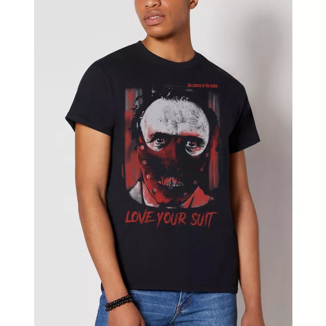 Spook everyone with this Silence of the Lambs t shirt! This bold graphic tee shows Hannibal Lecter and the words Love Your Suit and is perfect for any fan!