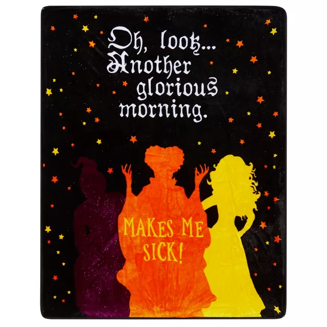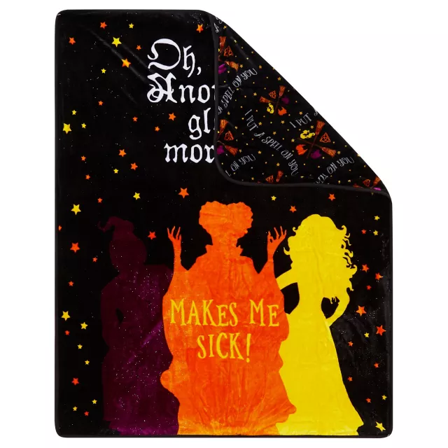 You'll never get sick of mornings when you get to bundle up with the Sanderson sisters with this officially licensed Makes Me Sick fleece blanket. This fleece blanket features a silhouette of each of your favorite witches from Hocus Pocus on it and is sure to keep you warm and comfortable no matter how much you hate mornings!
