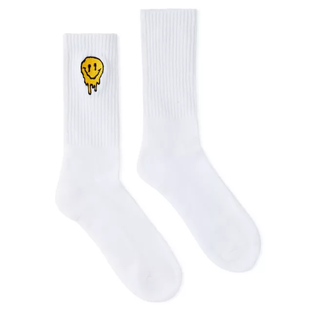 Get your smile on and add some happiness to your sock collection with these Melting Smiley Face Athletic Crew Socks. These awesome crew socks are the perfect way to show off your personality and will go great with any casual look.