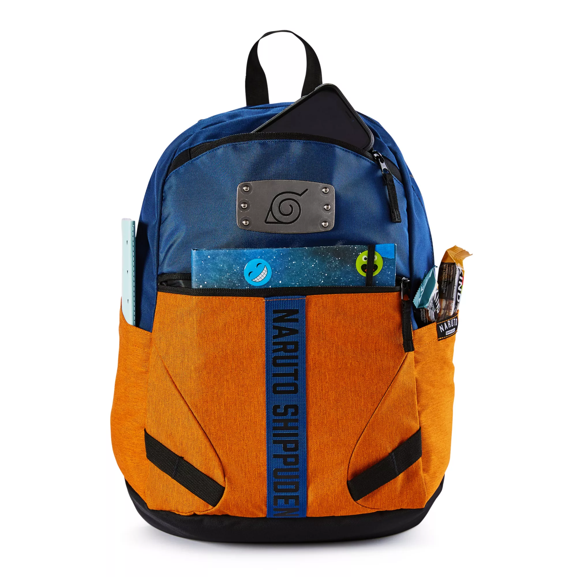 Show off your fandom with this officially licensed Naruto backpack. The orange and blue design will have you looking just like your favorite Naruto characters while you carry all of your essentials with you. One large zipper pocket, two front zipper pockets, two side pockets and an internal laptop sleeve make traveling easy!