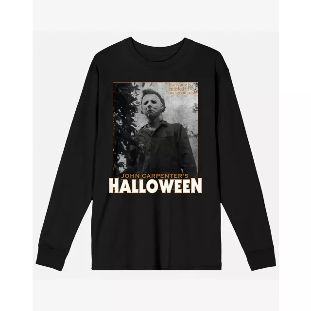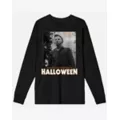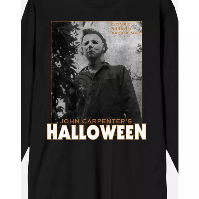 Look good while you watch your favorite horror movies when you wear this long-sleeved Michael Myers t shirt. Equal parts creepy and cozy, this Halloween t shirt is perfect for true horror fans.