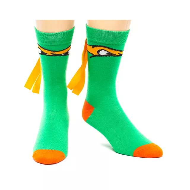 Cowabunga into Halloween in the Officially Licensed Teenage Mutant Ninja Turtles Orange Crew Sock. Features neon green sock with Michelangelo orange mask detail.
