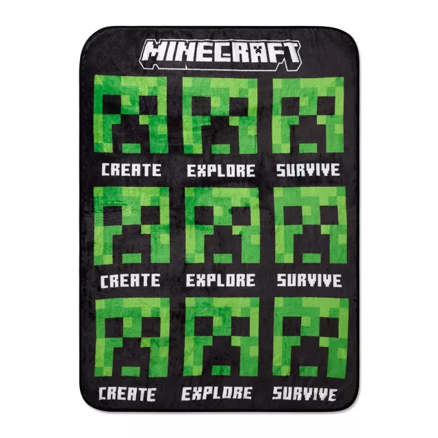 Show off your Minecraft fandom while staying cozy with this fleece blanket. This warm blanket features the Minecraft logo and the words "Create Explore Survive" and is perfect for anyone who loves playing Minecraft.