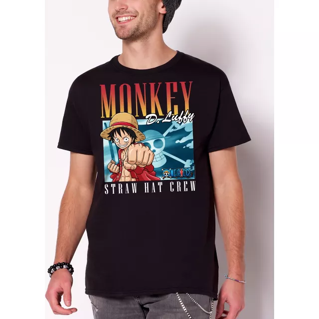 Show off your favorite straw hat-wearing anime character with this official One Piece Monkey D. Luffy t shirt! This fun graphic tee is sure to be a popular pick whenever you wear it.