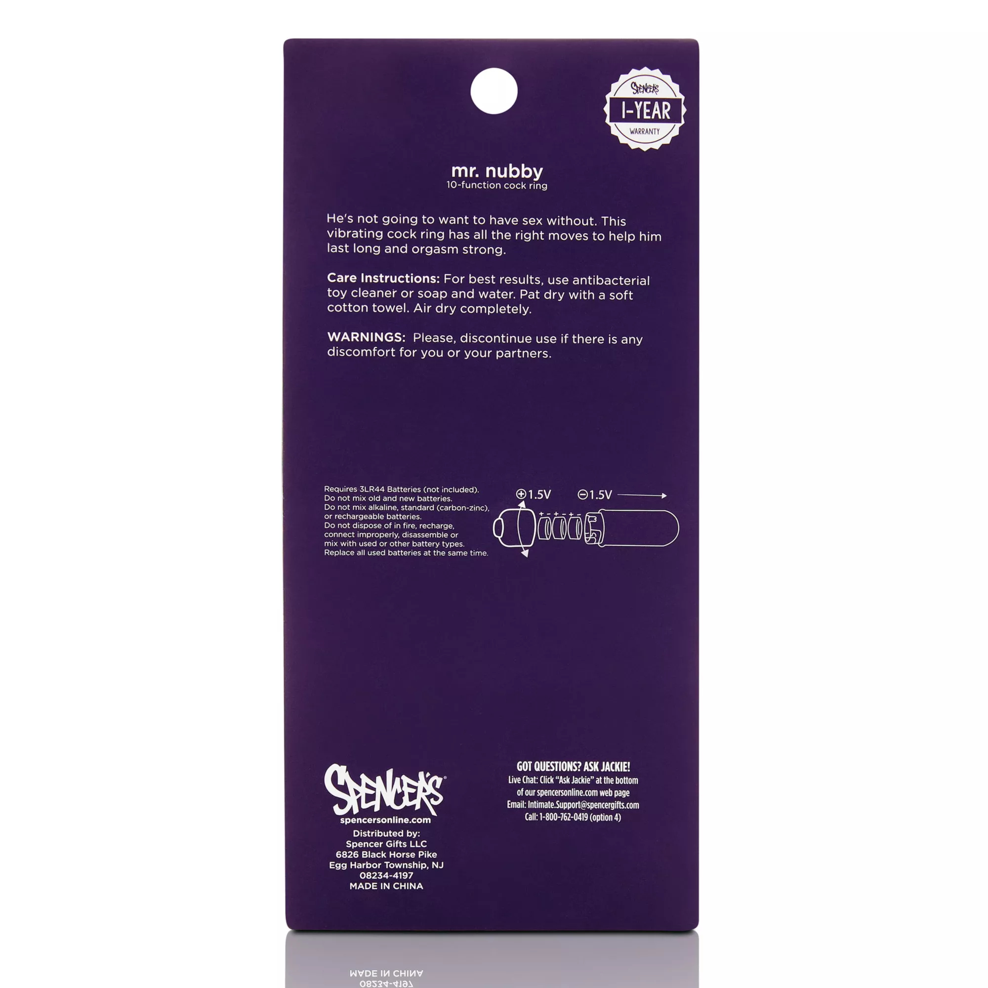 Stay hard and please your partner with the Mr. Nubby 10-Function Vibrating Cock Ring! This easy-to-use cock ring is the perfect couples' sex toy because each of you will experience total pleasure. Add to your stamina in bed and bring both of you even more excitement with Mr. Nubby.
