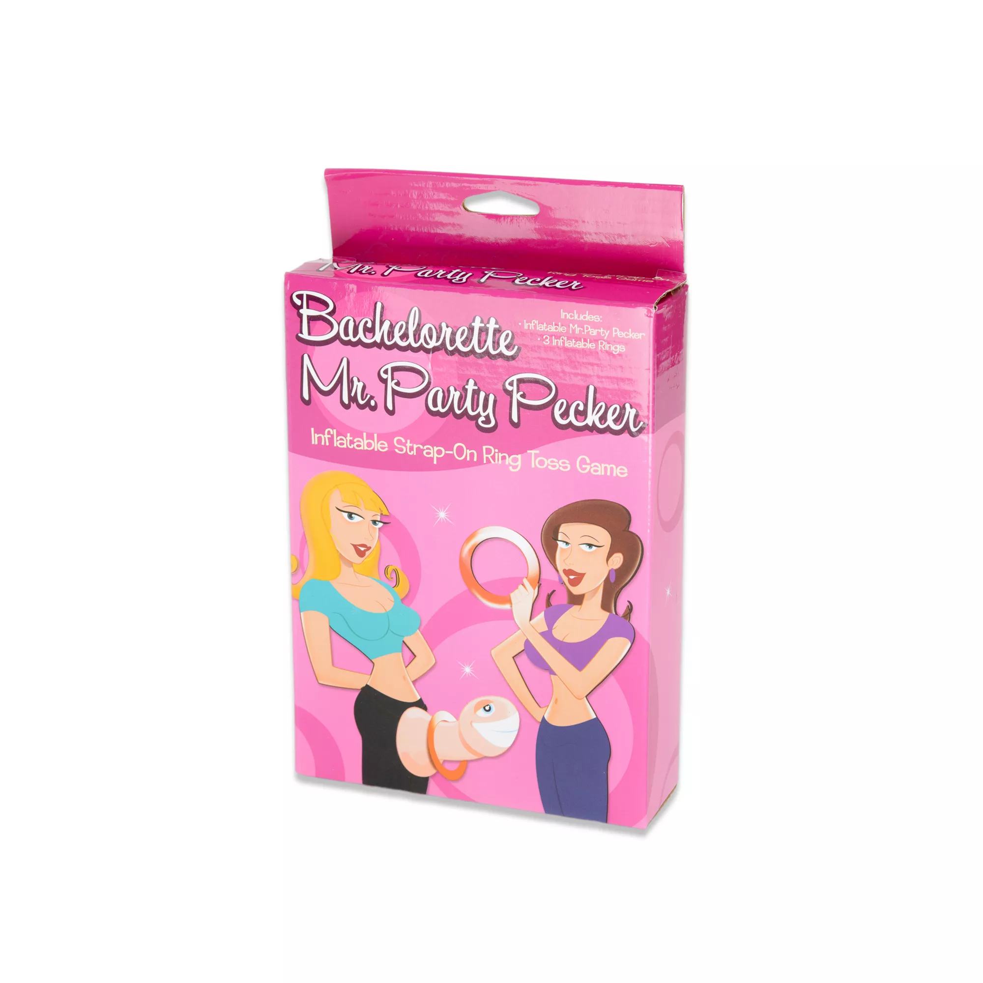 It’s not a party until someone straps on The Original Mr. Party Pecker! Perfect for bachelorette parties, birthdays, or a girls night out, this blow-up boner is worn around the waist and includes three inflatable rings. Take turns trying to sink the rings on Mr. Party Pecker’s happy head; the girl who sinks the most rings wins! Who needs a male stripper? Mr. Party Pecker is the only hunk you’ll ever need to have a good time! It’s guaranteed to make 'em laugh!