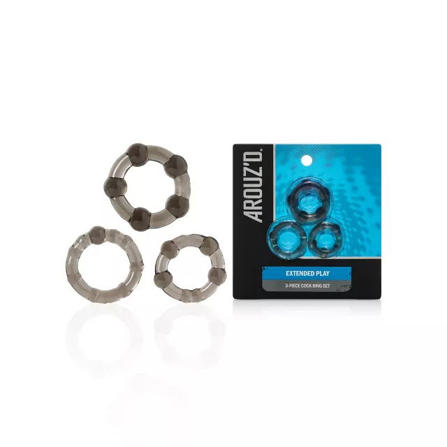 Keep the pleasure rolling in with this Arouz'd Extended Play Cock Ring Set! Complete with three multi-sized, ribbed cock rings, this set is designed to keep you hard and improve your stamina in the bedroom.