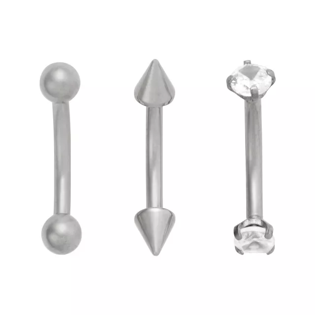 Multi-Pack ASTM F-136 Titanium CZ and Spiked Curved Barbells 3 Pack - 16 Gauge