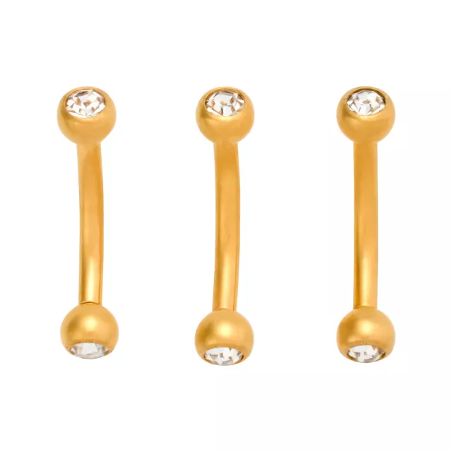 Multi-Pack ASTM F-136 Titanium Round CZ Gold-Plated Curved Barbells 3 Pack - 16 Gauge