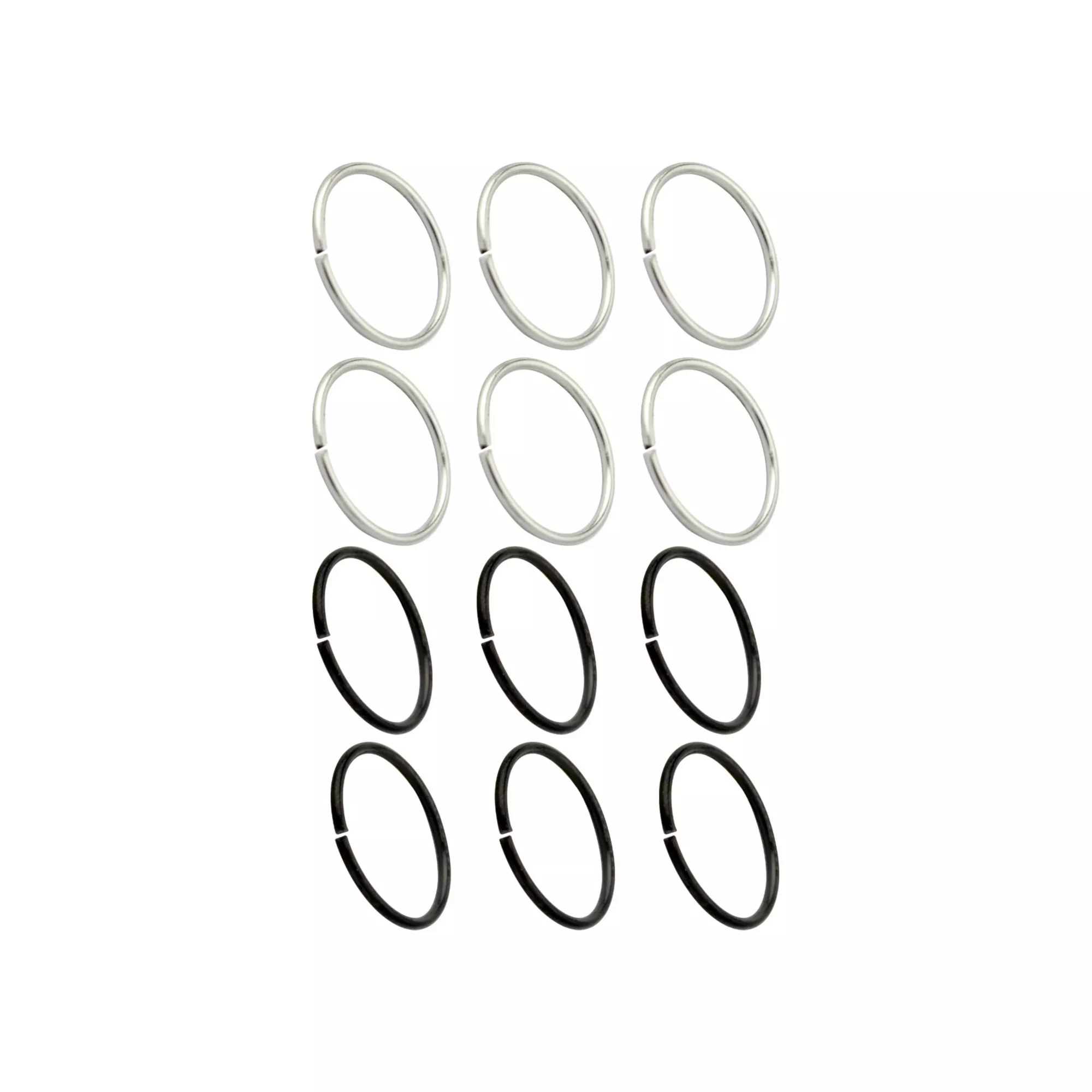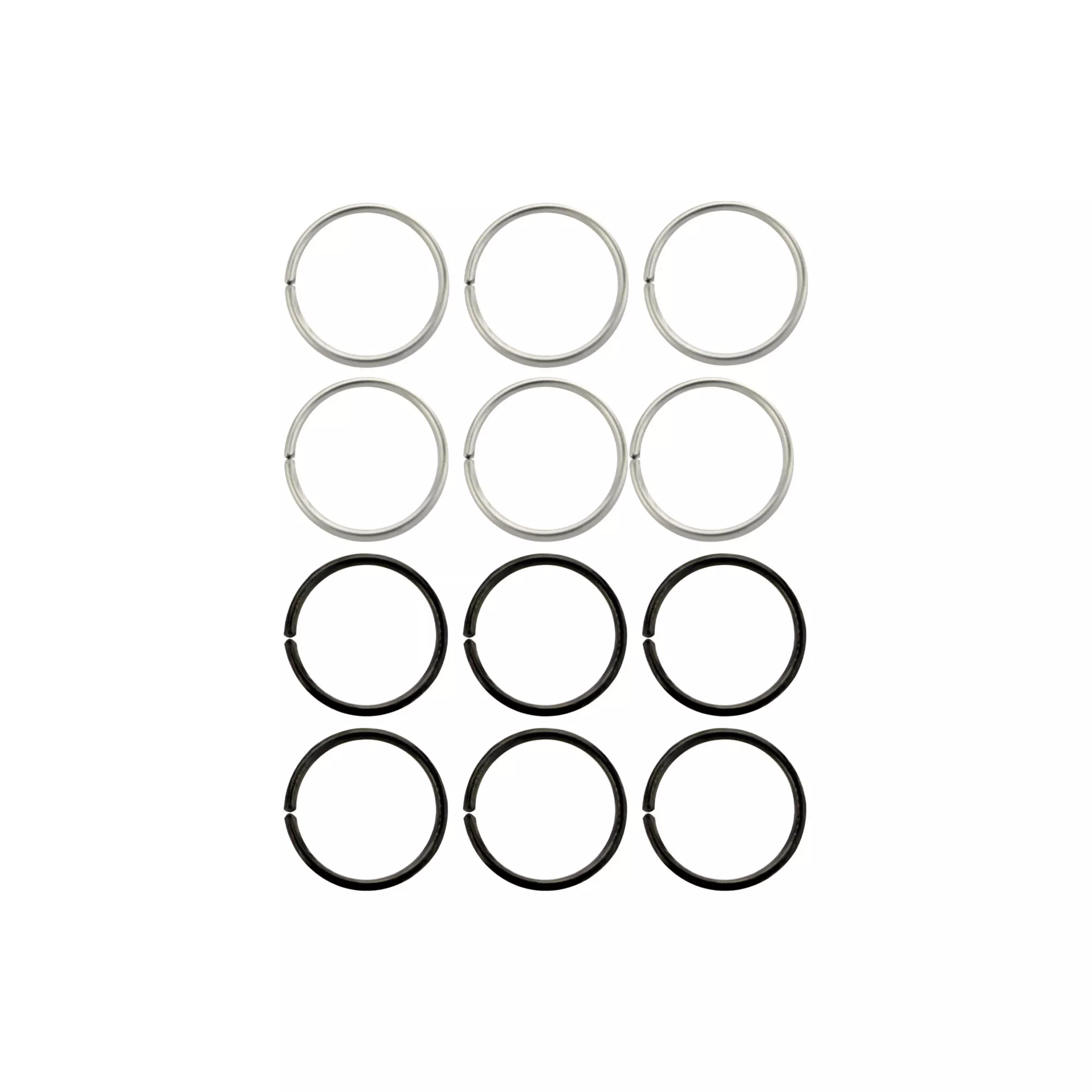 Multi-Pack Black and Silvertone Seamless Hoop Nose Rings 12 Pack - 20 Gauge