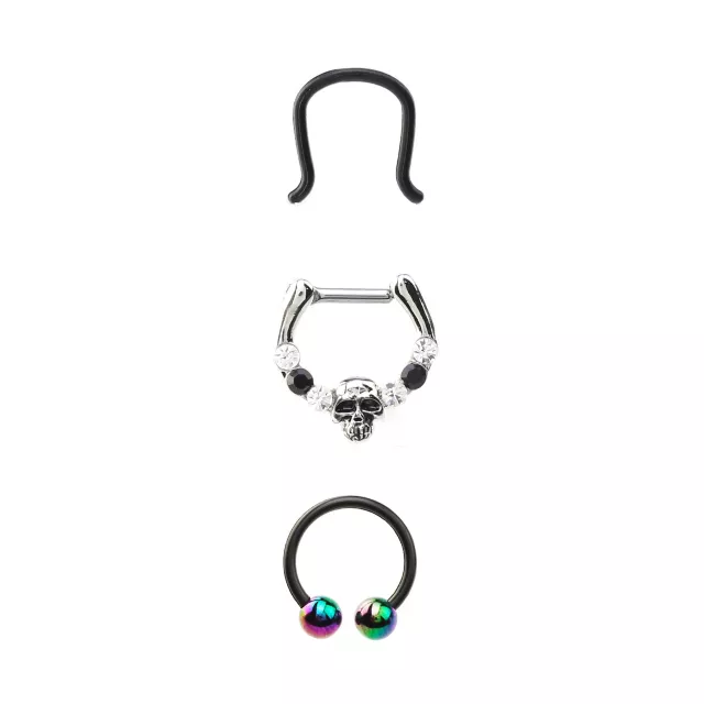Multi-Pack Black CZ Skull Septum Ring Horseshoe Ring and Retainer 3 Pack - 16 Gauge
