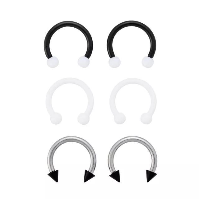 Multi-Pack Black White and Silvertone Horseshoe Rings 3 Pair - 14 Gauge