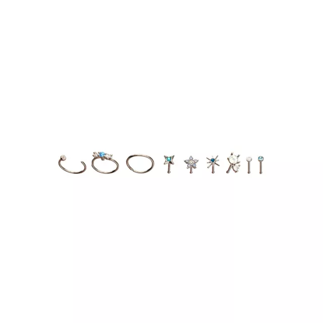 Multi-Pack Blue CZ Flower Titanium Mixed Nose Rings 9 Pack - 20 Gauge