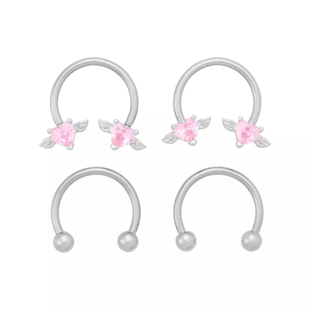 Multi-Pack CZ Angel Heart Titanium Horseshoe Rings 2 Pair - 16 Gauge