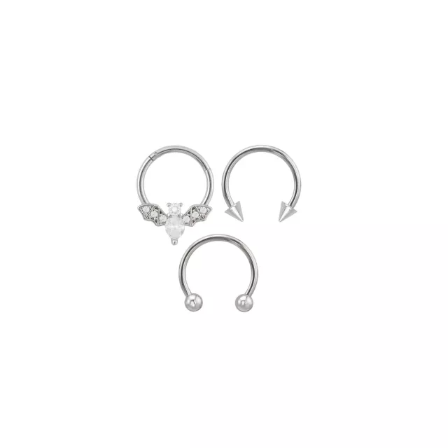 Multi-Pack CZ Bat Titanium Hinged Hoop and Horseshoe Rings 3 Pack - 16 Gauge