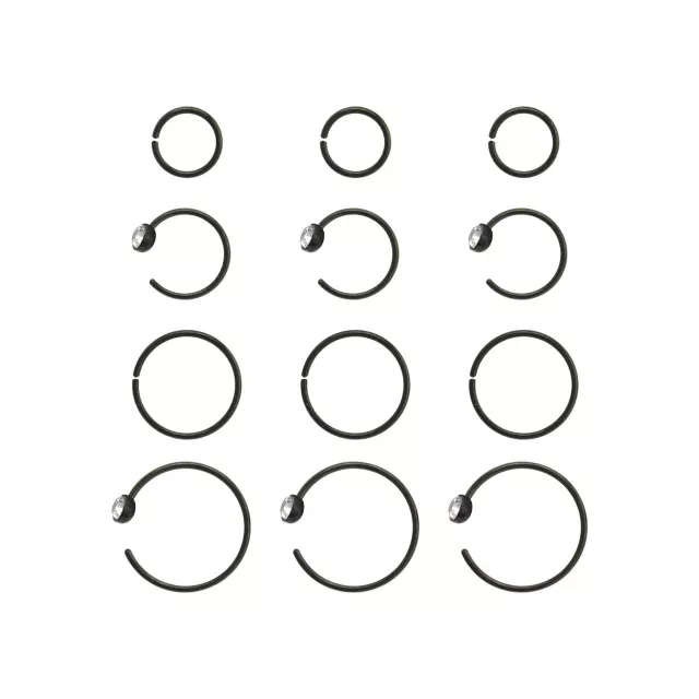 Multi-Pack CZ Black Hoop and Half Hoop Nose Rings 12 Pack - 20 Gauge