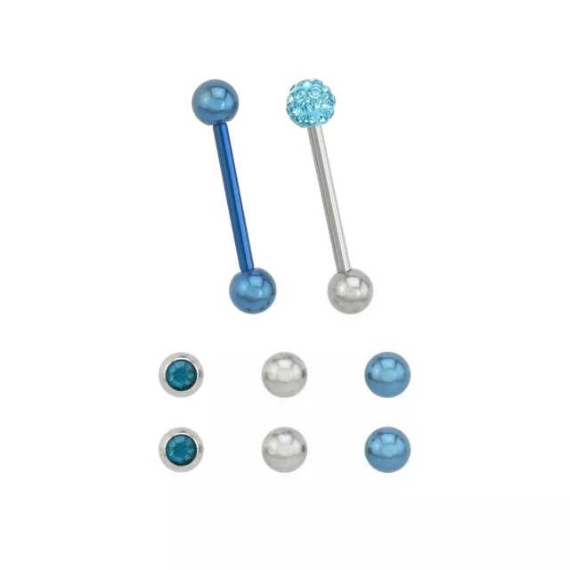 Multi-Pack CZ Blue Pave Silvertone Barbells 2 Pack with Extra Barbells - 14 Gauge