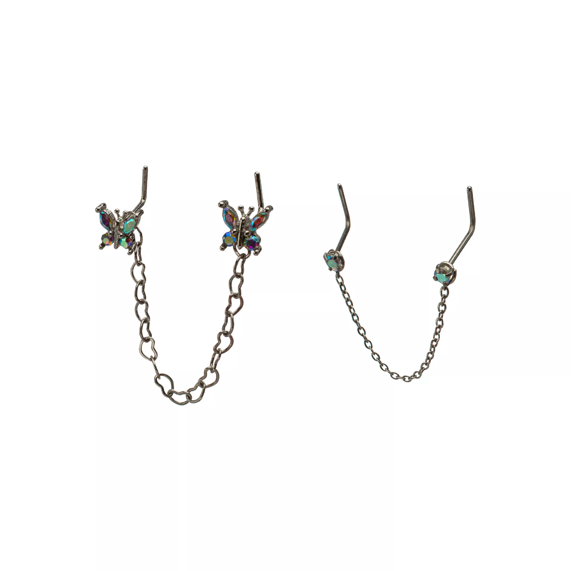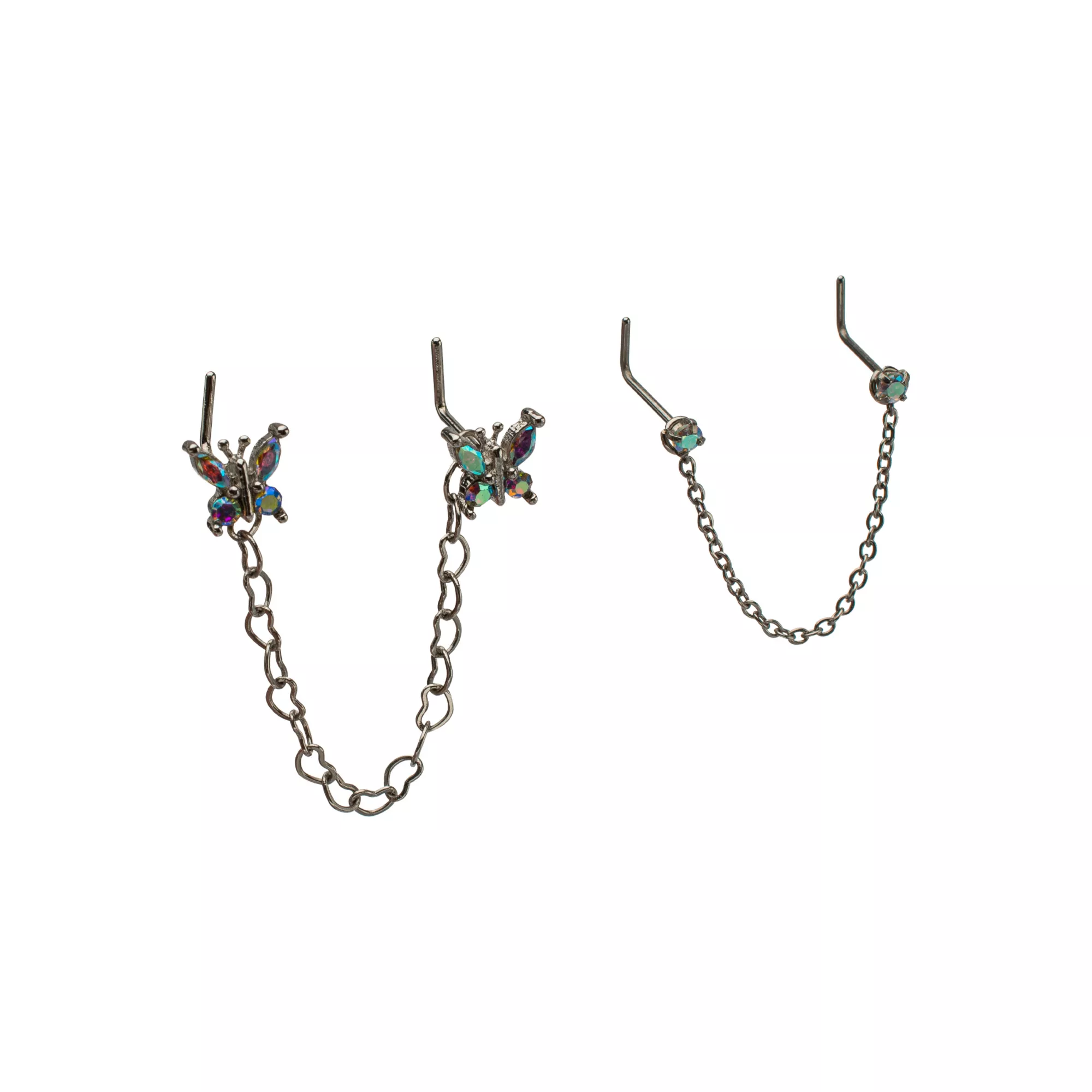 Multi-Pack CZ Butterfly L-Bend Nose Chains - 2 Pack