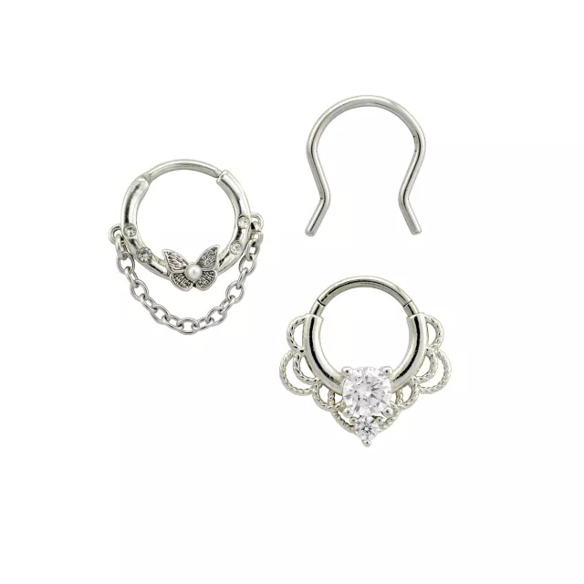 Multi-Pack CZ Butterfly Titanium Septum Rings and Retainer 3 Pack - 16 Gauge