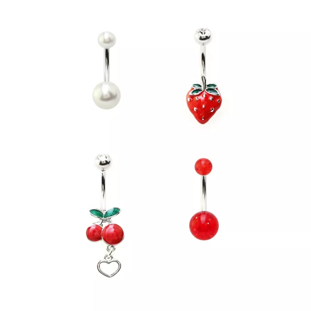 Multi-Pack CZ Dangle Fruit Belly Ring 4 Pack - 14 Gauge