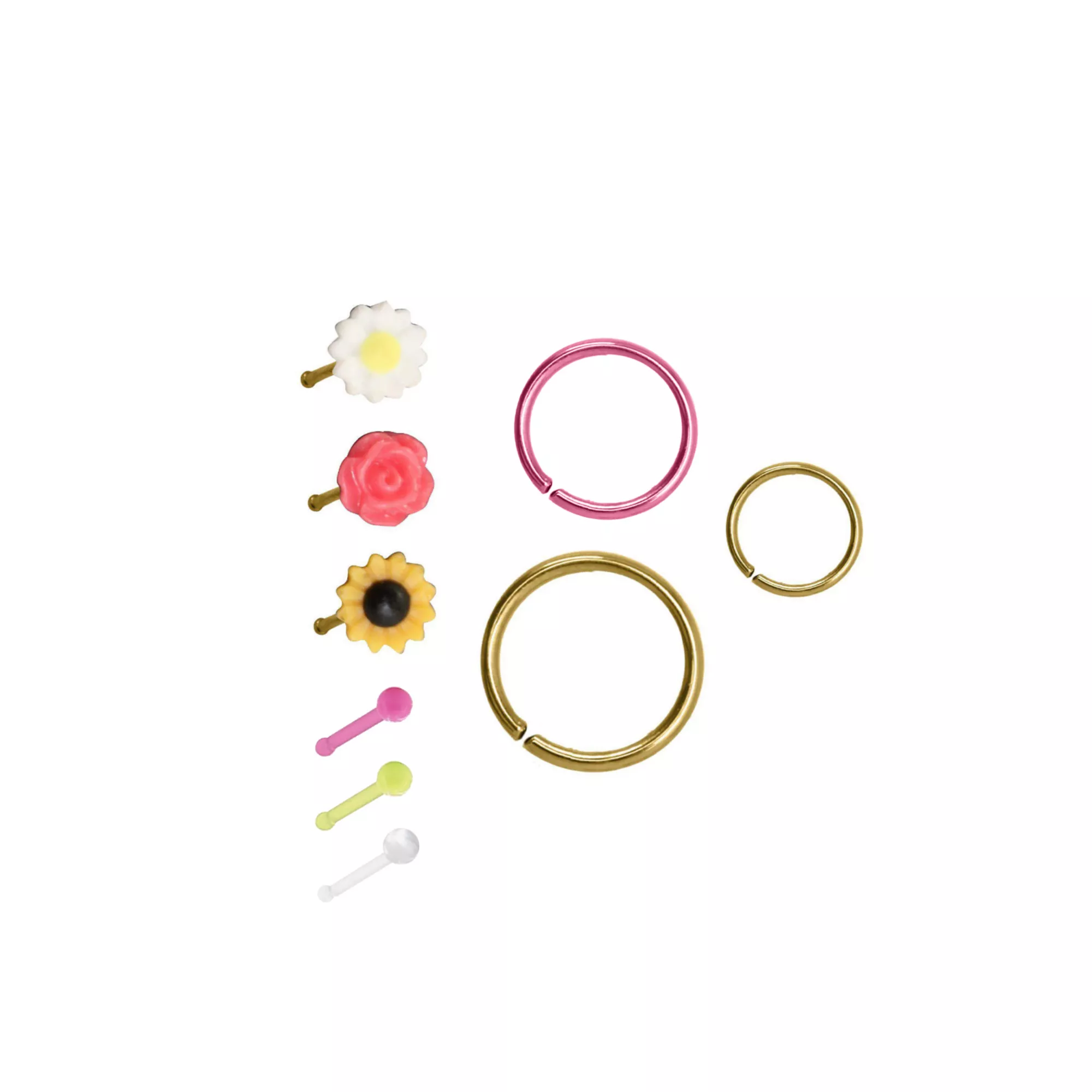 Multi-Pack CZ Flower Stud Nose Rings and Hoop Nose Rings 9 Pack - 20 Gauge