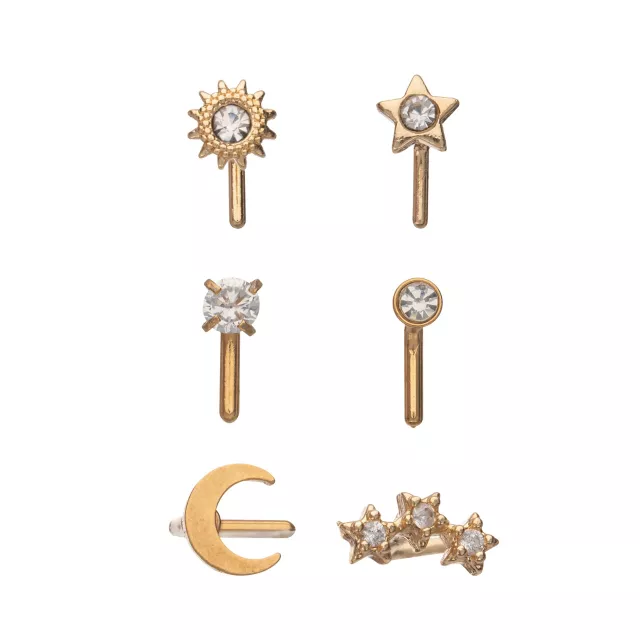 Multi-Pack CZ Gold-Plated Galaxy L-Bend Nose Rings - 6 Pack