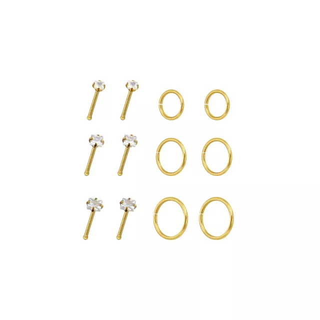 Multi-Pack CZ Gold-Tone Titanium Nose Pins and Hoops 12 Pack - 18 Gauge